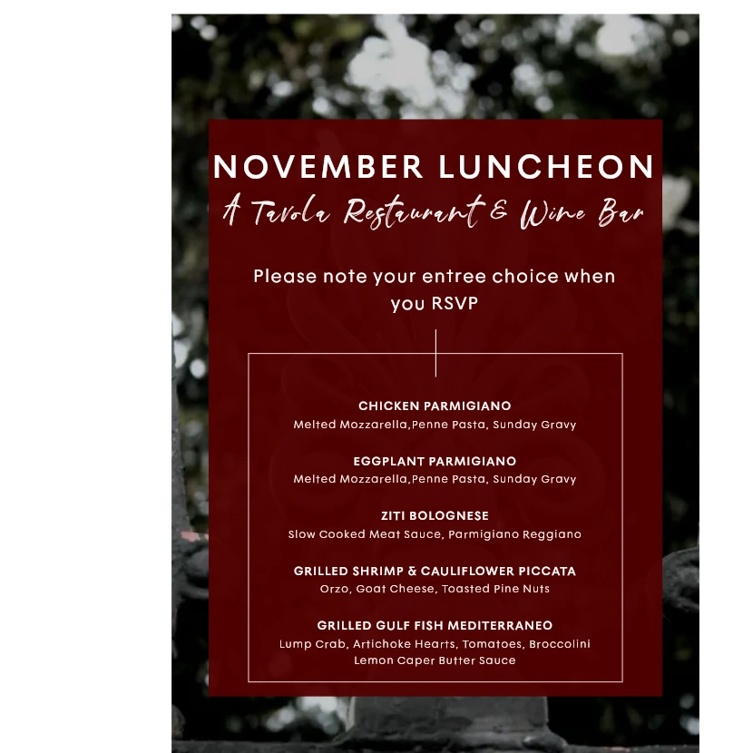 Join us for our next Luncheon on November 20th at A Tavola Restaurant & Wine Bar!